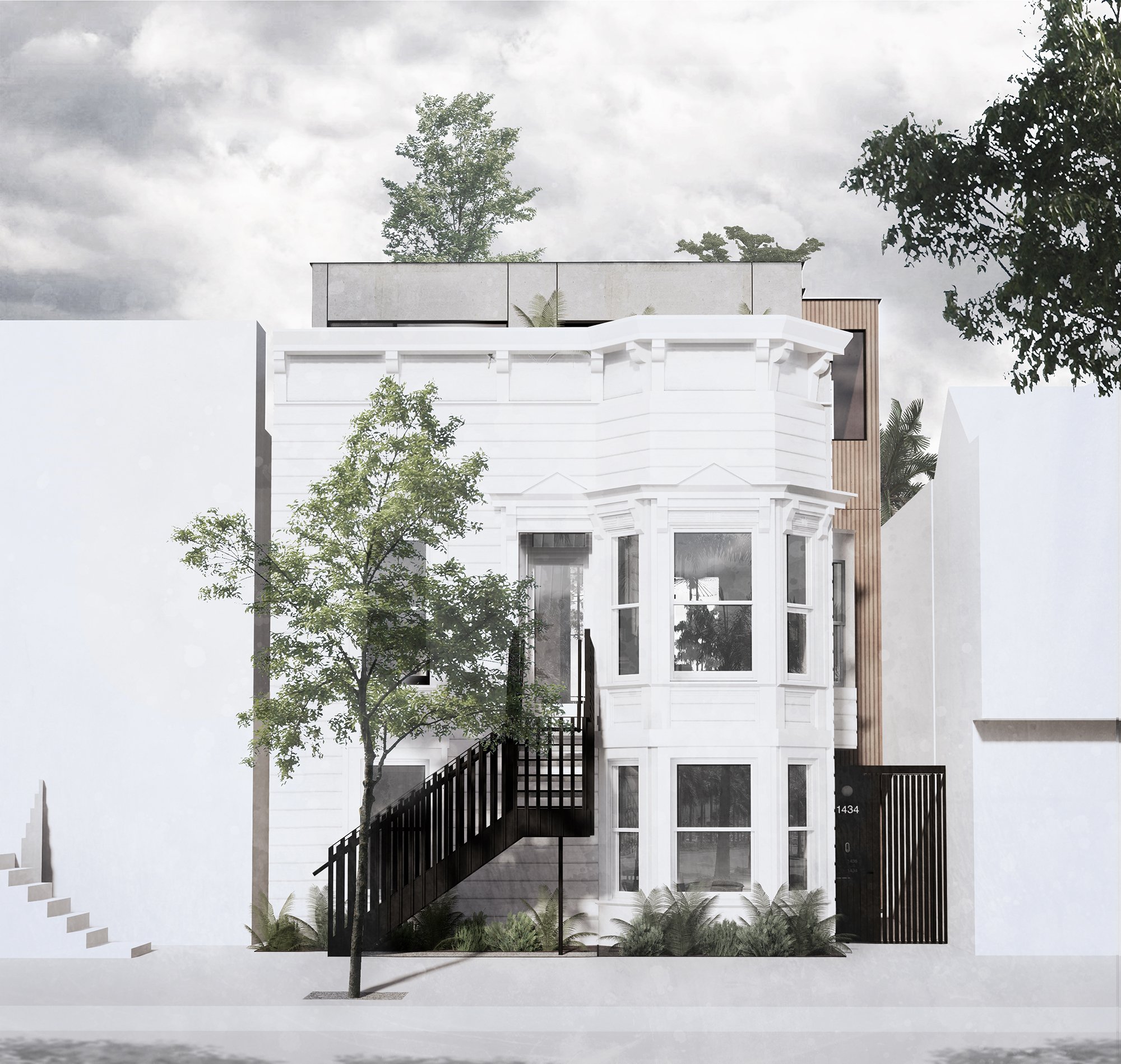 An existing Class-A Edwardian on Dolores Street gets a renovation and addition. New, clean geometries play with the existing architecture and give the home an entirely new face on its rear facade.